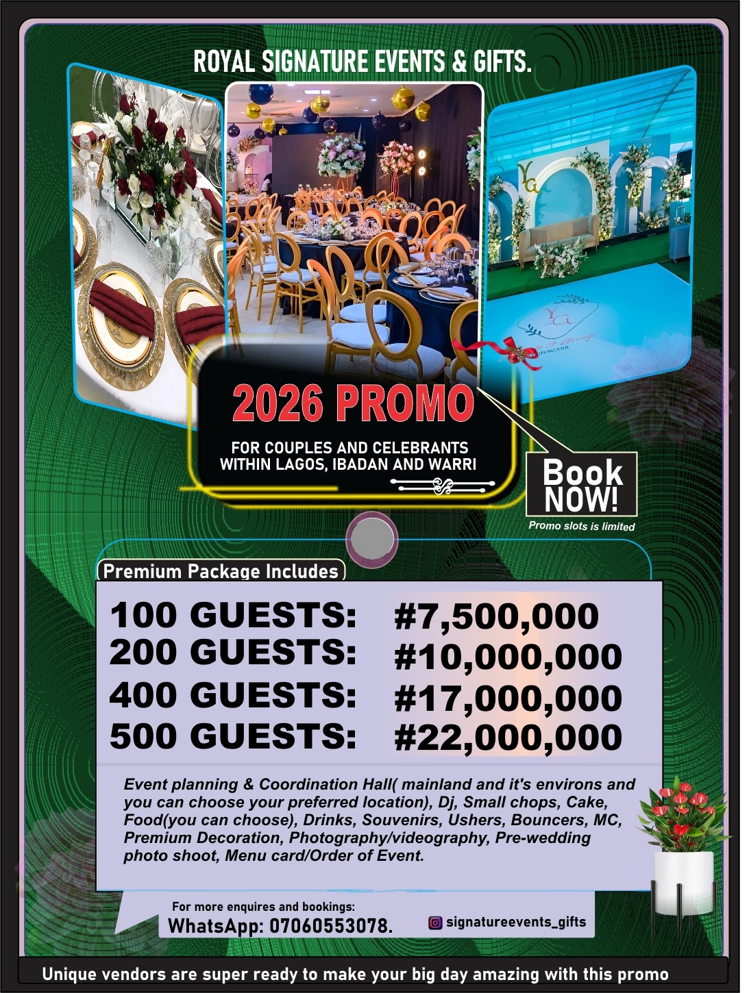 We aim to simplify the daunting task of sourcing all the items needed for your event while providing you with a near-accurate estimate of the total cost.