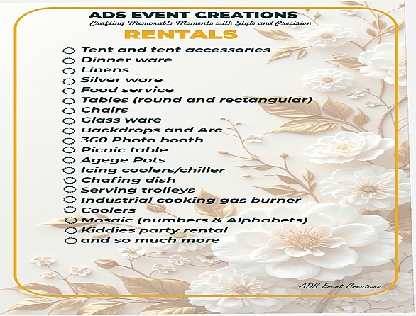 At ADS EVENT CREATIONS we turn your vision into reality with expert planning and elegant decor. Whether it is a corporate gathering, wedding, birthday, or special celebrations, we handle every detail with creativity, care and professionalism.