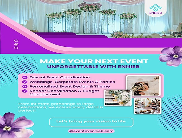 EnnieB Events & Opulent Ushers is a premium event planning and event staffing brand dedicated to creating unforgettable experiences with softness, excellence, and class. We curate beautiful, well-coordinated events—from weddings and engagements to birthdays, corporate gatherings, and intimate celebrations. Our approach is intentional: we listen to your vision, align with your budget, and create a seamless event that feels warm, elegant, and stress-free. To complement our planning services, we provide Opulent Ushers by EnnieB, a team of well-trained, graceful and professional ushers who handle guest reception, protocol management, crowd coordination, gift collection, and general event support with poise and hospitality. We believe every event deserves peace, order, joy, and beauty and we show up to make that happen.