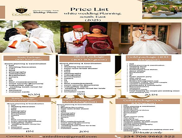 Your Dream Wedding… Planned Within Your Budget. At Classic Events by Annie, we understand that every couple has a unique vision and a unique budget. This is why we’ve created a special budget-friendly wedding price list, perfect for couples who want a smooth, beautiful, and well-coordinated event without overspending. This package does not limit what we can do. It simply gives room for clients who want a straightforward, well-structured event planning service that fits the budget they already have. And for couples with a bigger vision or specific preferences, we also create fully customized packages tailored to your exact needs, taste, and style. Whether you’re working within a strict budget or planning something grand, Classic Events by Annie is here to bring your dream wedding to life with professionalism, creativity, and excellence. Send us your event details today, let’s plan magic within your means @classic_events_byannie