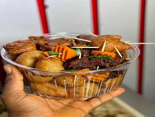 We make healthy and nutritious finger foods like ,samosa,springrolls, Puffpuff, plantainmosa, giz/beef dodo,barbecue and the likes