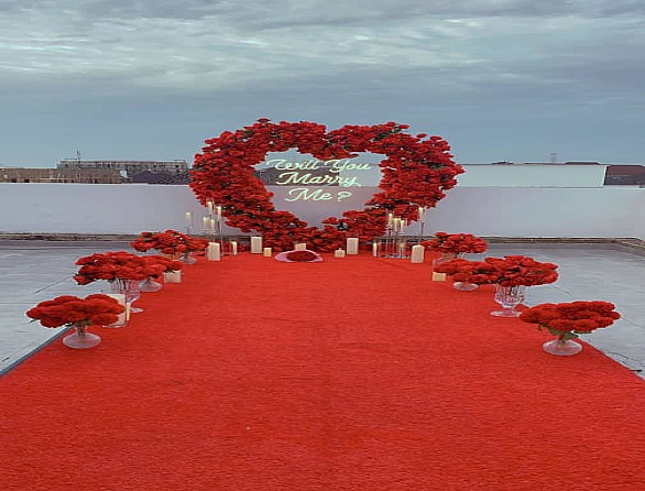 Backdrop,cake tables,chairs, Tables,tablecloth,menu,napkins,chargerplates,centerpieces,candles,wine cups, cutlery and welcome stand.