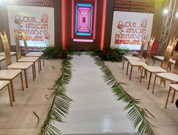 Includes: Custom stage/backdrop design, premium table setup, floral & ambient lighting décor, entryway & focal-point styling, thematic props, and full color consultation.
