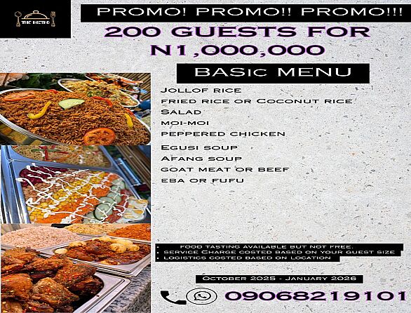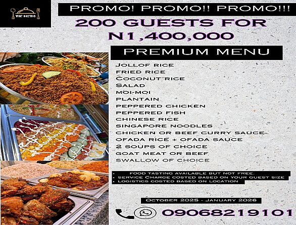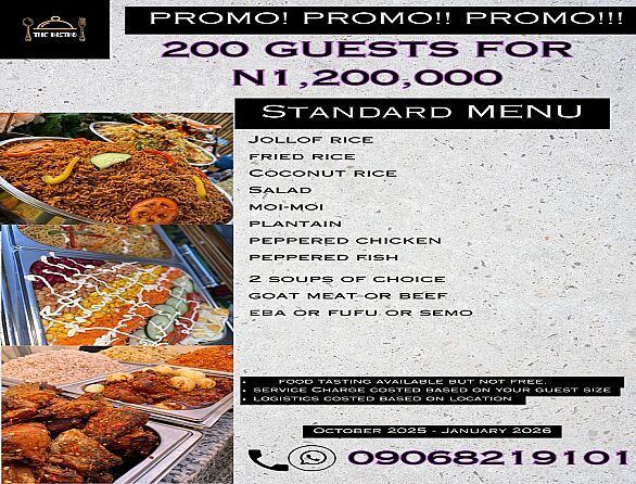 The Bistro Portharcourt is an event catering brand in Port Harcourt, we serve tasty quality meals at the best rates you’d ever find. We are food safety certified and HACCP compliant so your meals are prepared under the most hygienic conditions… Our service is impeccable and we have reviews posted on our socials. Food tasting is available but it’s not free. Hurry now and secure your event dates with us. Your guests deserve THE BISTRO EXPERIENCE