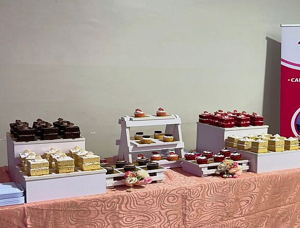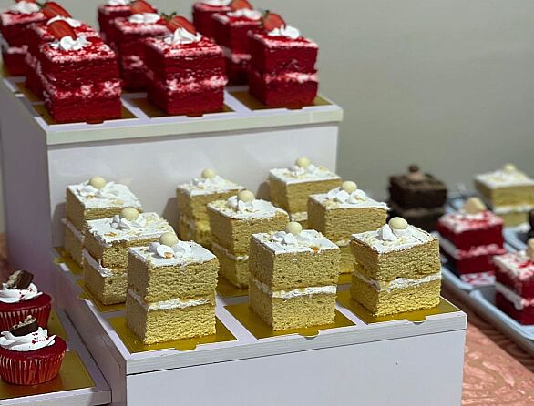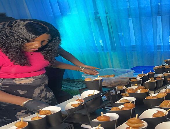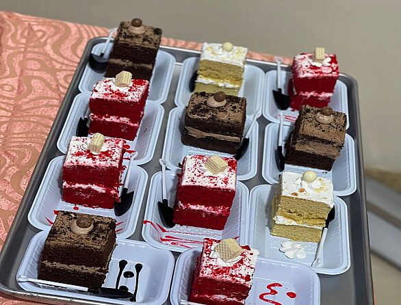 We offer full service small chops, all occasions cakes and pastries, finger foods, burgers, yogurt parfait, cake slices, desserts