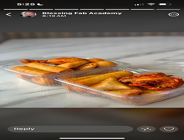 We offer yummy ginger foods like Smallchops,yam fries and fish and also sweet desserts to balance the meal